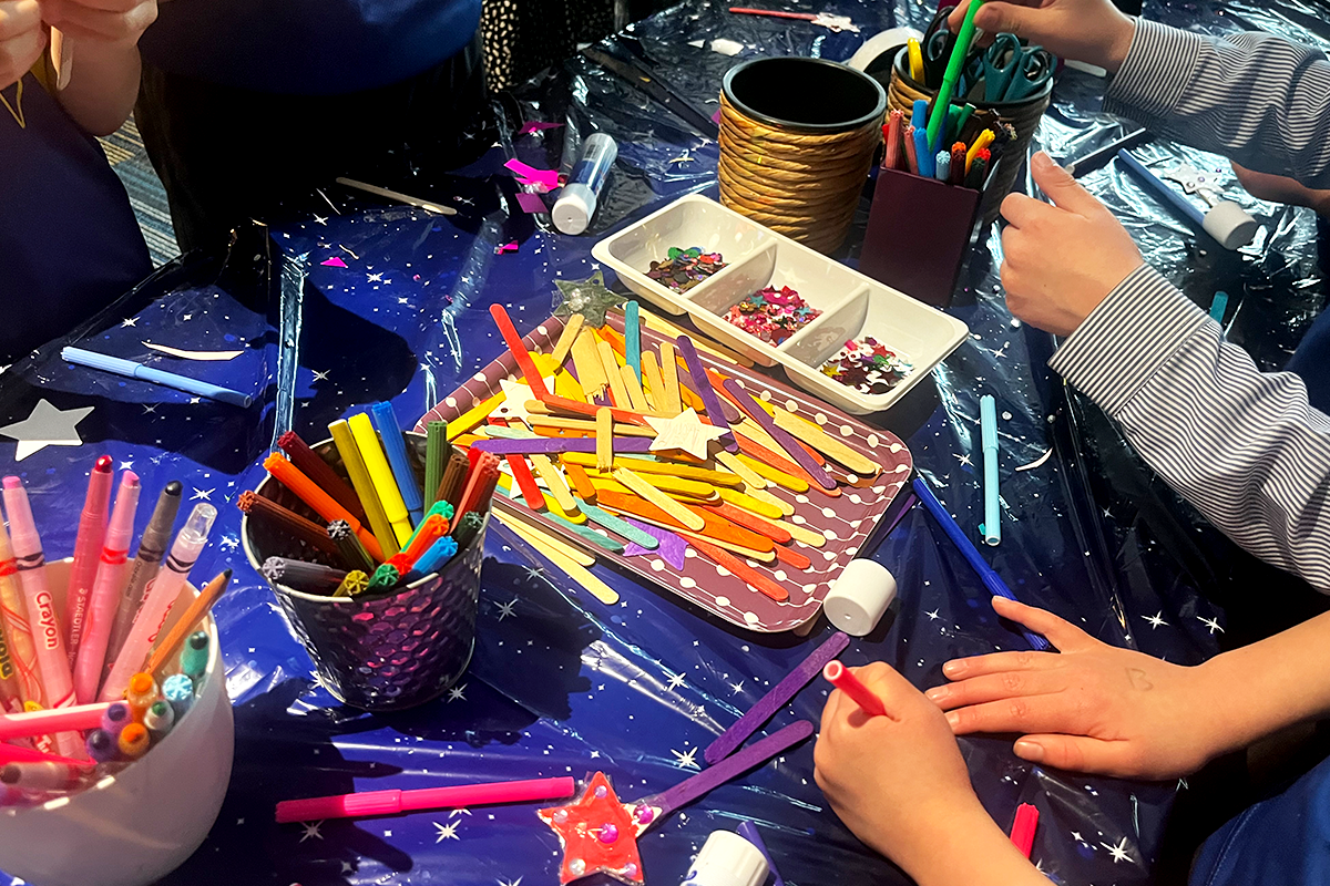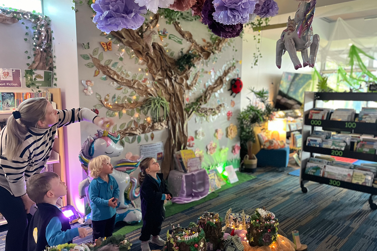 An interactive display featuring Hush the possum captivated many of the children as they helped her decide what food to eat by making paper collage food. Each lunchtime throughout the week, the library was a hub of activity, with teachers reading stories in Aladdin’s Cave. The children loved crafting jungle animals, magic wands, and even gymnastics wands, all while immersing themselves in the stories.