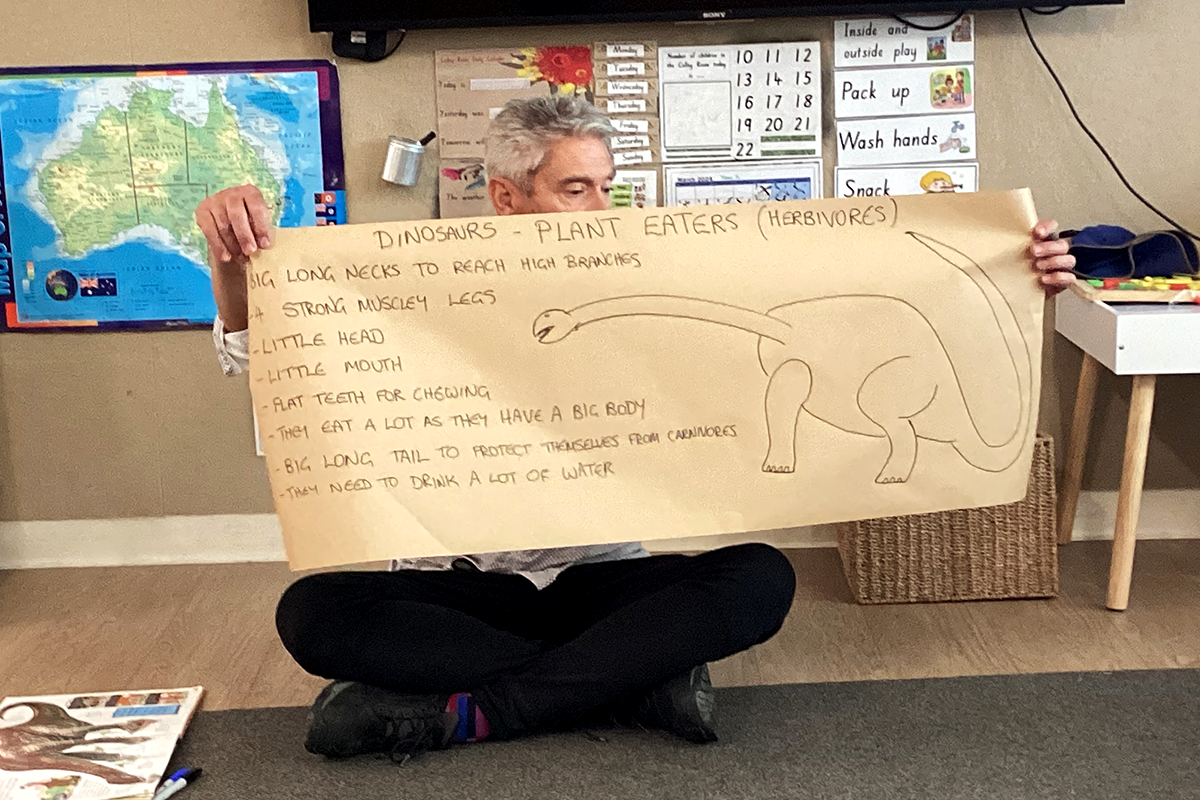 Dinosaurs have always fascinated children and adults alike. A day in Nature Play sparked an idea for an inquiry when a group of children from the Colley Room were pretending to dig up dinosaur bones. To begin the inquiry the children gathered and as a group discussed what they knew about dinosaurs and what else they would like to find out. One common question was – how did the dinosaurs become extinct? The children started their inquiry by bringing in dinosaur books from home, with the hope that they may hold some of their answers. To help guide them on their inquiry, a paleontologists activity was set up so the children could experiment, using all the tools which a paleontologist would have in their kit. We also discussed the differences between carnivores and herbivores which led to the children creating their own dinosaur from playdough. Some very cute creations were made! The fascination of dinosaurs only grew from our inquiry – a topic which inevitably invites more questions than answers.