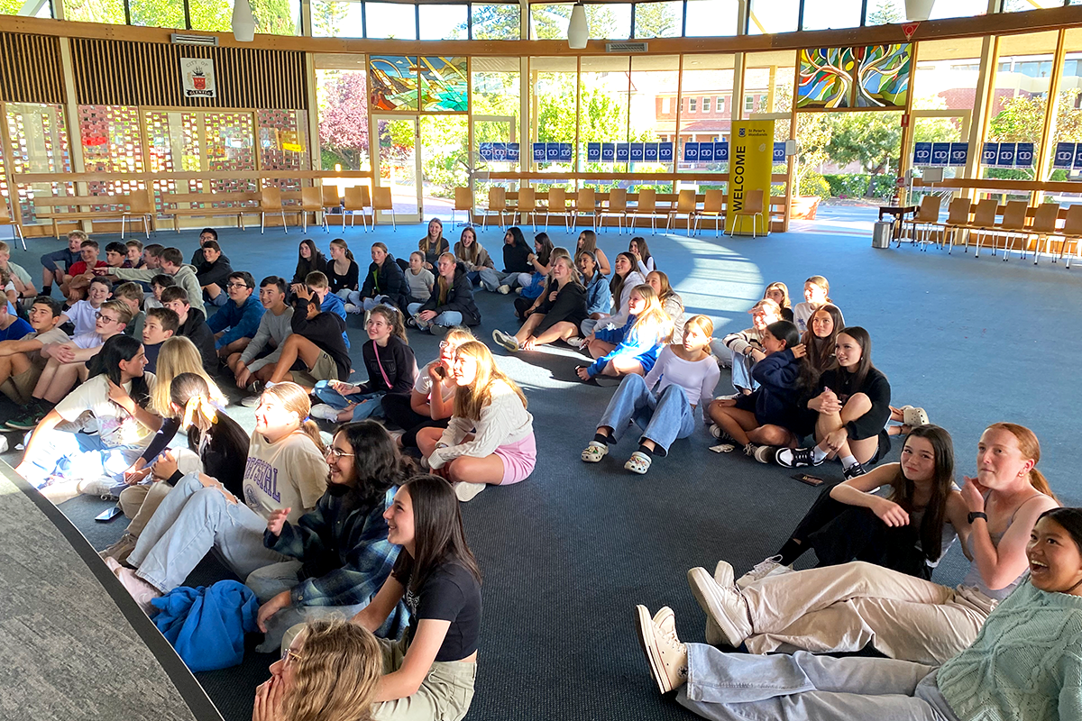 In October, 64 past students from the Class of 2022 returned to reacquaint themselves with friends and teachers, tour their previous classrooms, then laugh at old photos and videos we had unearthed before enjoying pizza together.