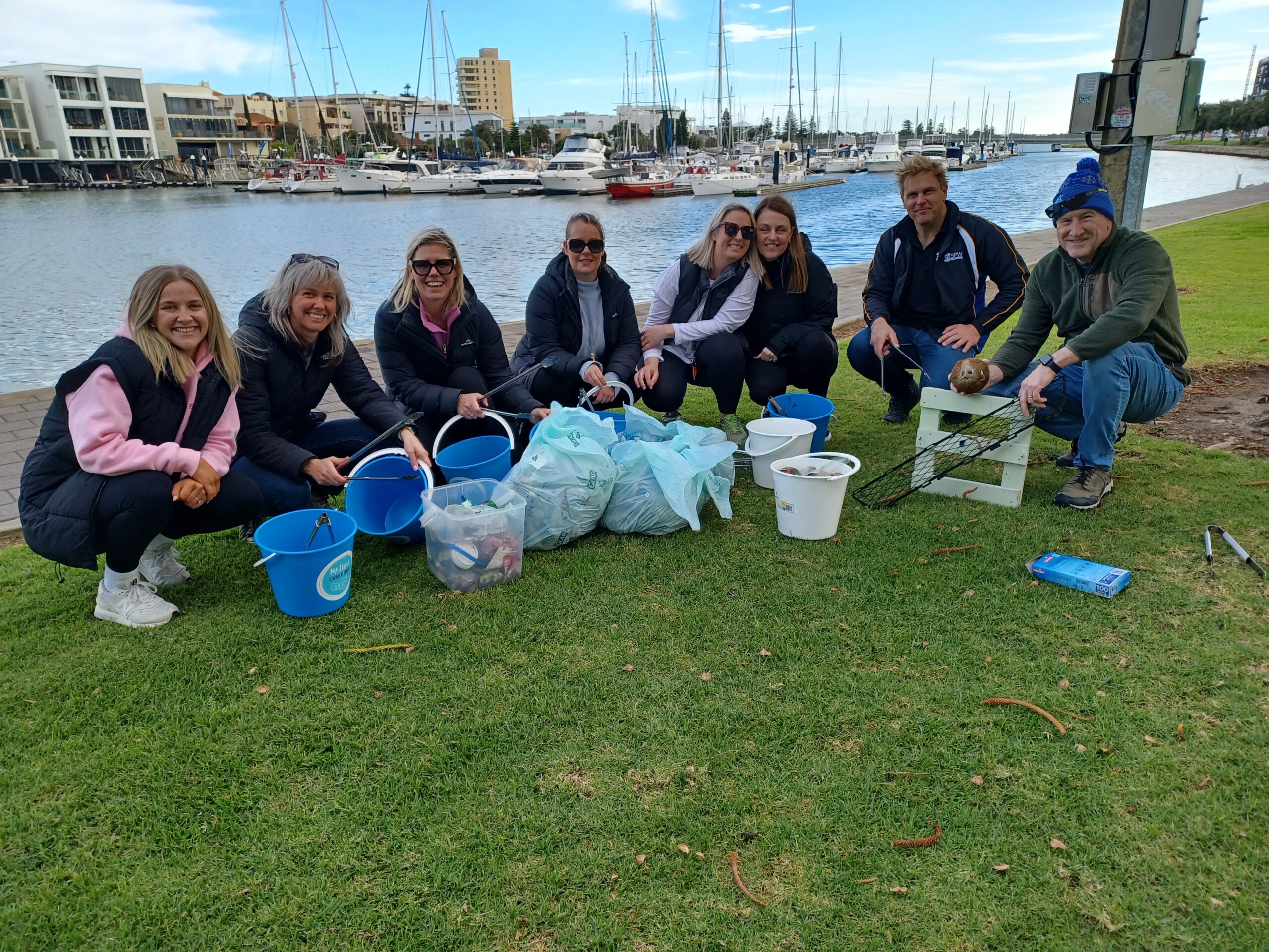 Environmental stewardship was the focus for a team tasked with cleaning up the Patawalonga. Armed with gloves and bags, they worked to remove litter and debris, helping to keep this waterway clean.